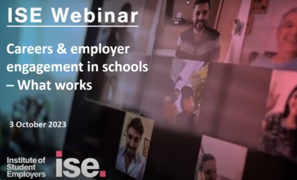 Last month I had the opportunity to participate in an ISE webinar to talk about what works in careers and employer engagement in schools. It was a great opportunity as, as well as me, there were also employers and representatives of schools there. I talked about currently policy and practice, but then we all rolled up our sleeves and tried to solve some of the real problems that people on both sides of the education and employment divide experience.